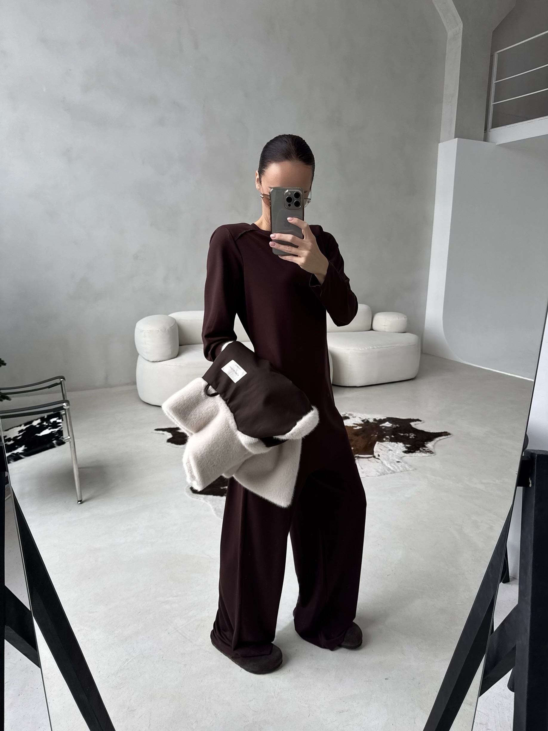 Брюки палаццо джерси (шоколад) - купить по выгодной цене. Промокод на первую покупку. | CHERISH