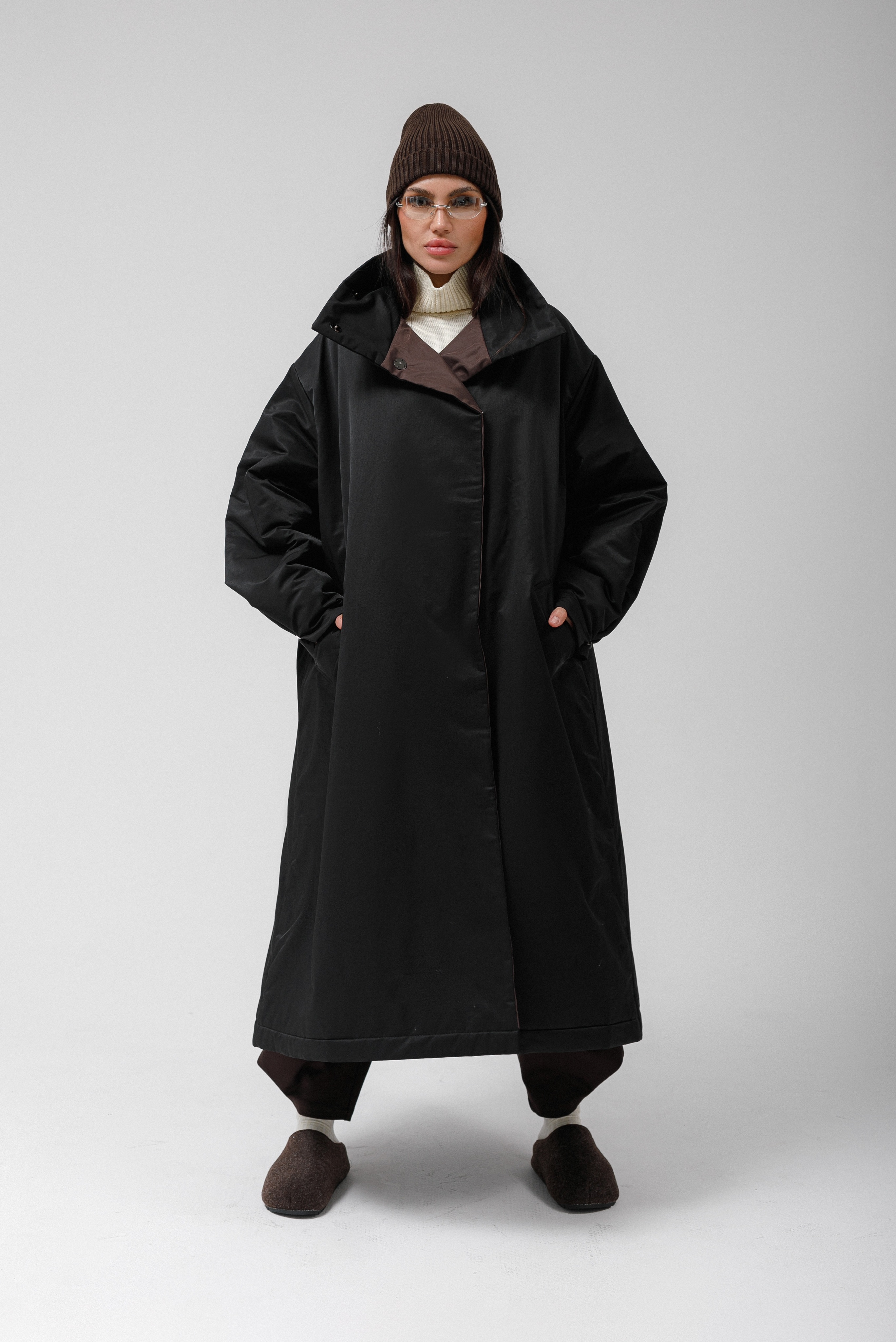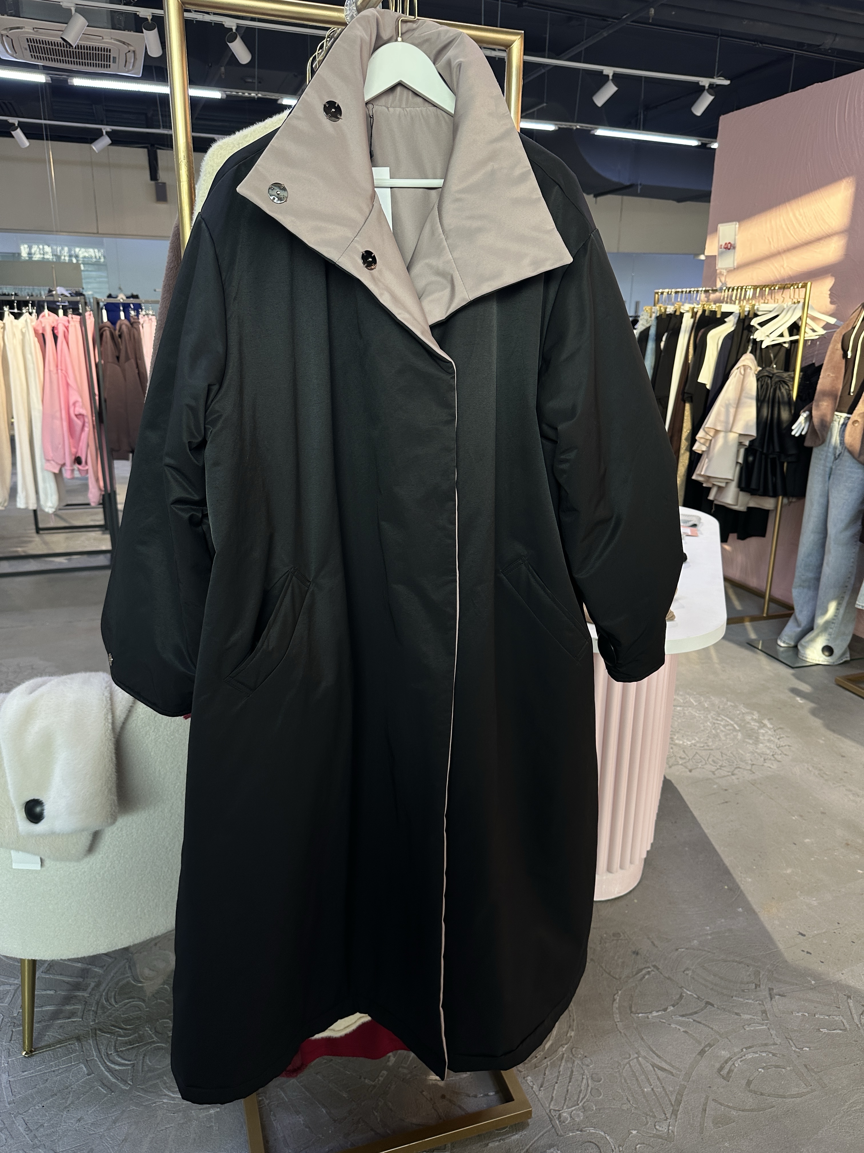 Плащ MAXI DOUBLE утепленный (черный/бежевый) - купить по выгодной цене. Промокод на первую покупку. | CHERISH