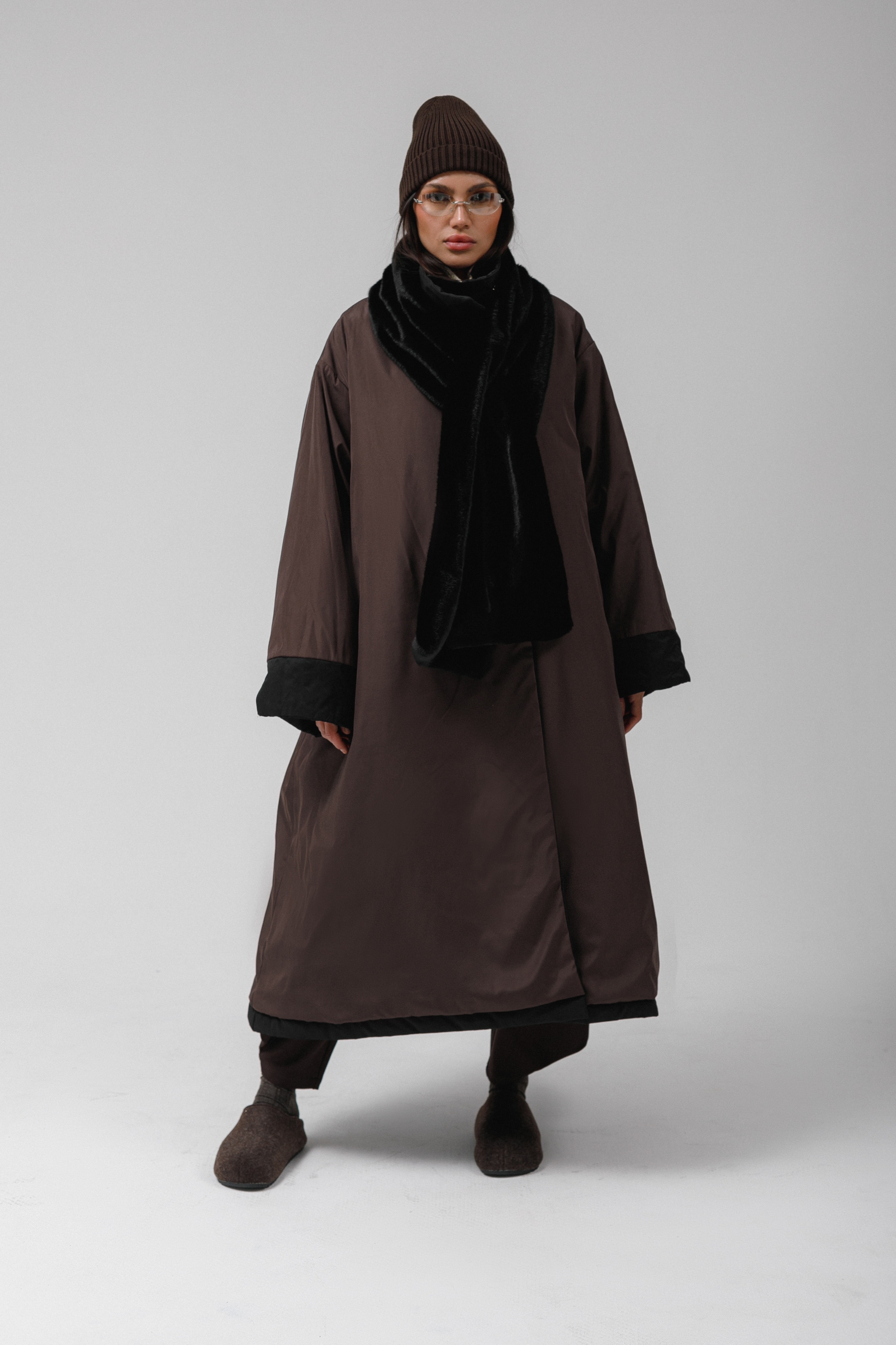 Плащ MAXI DOUBLE утепленный (черный/бежевый)