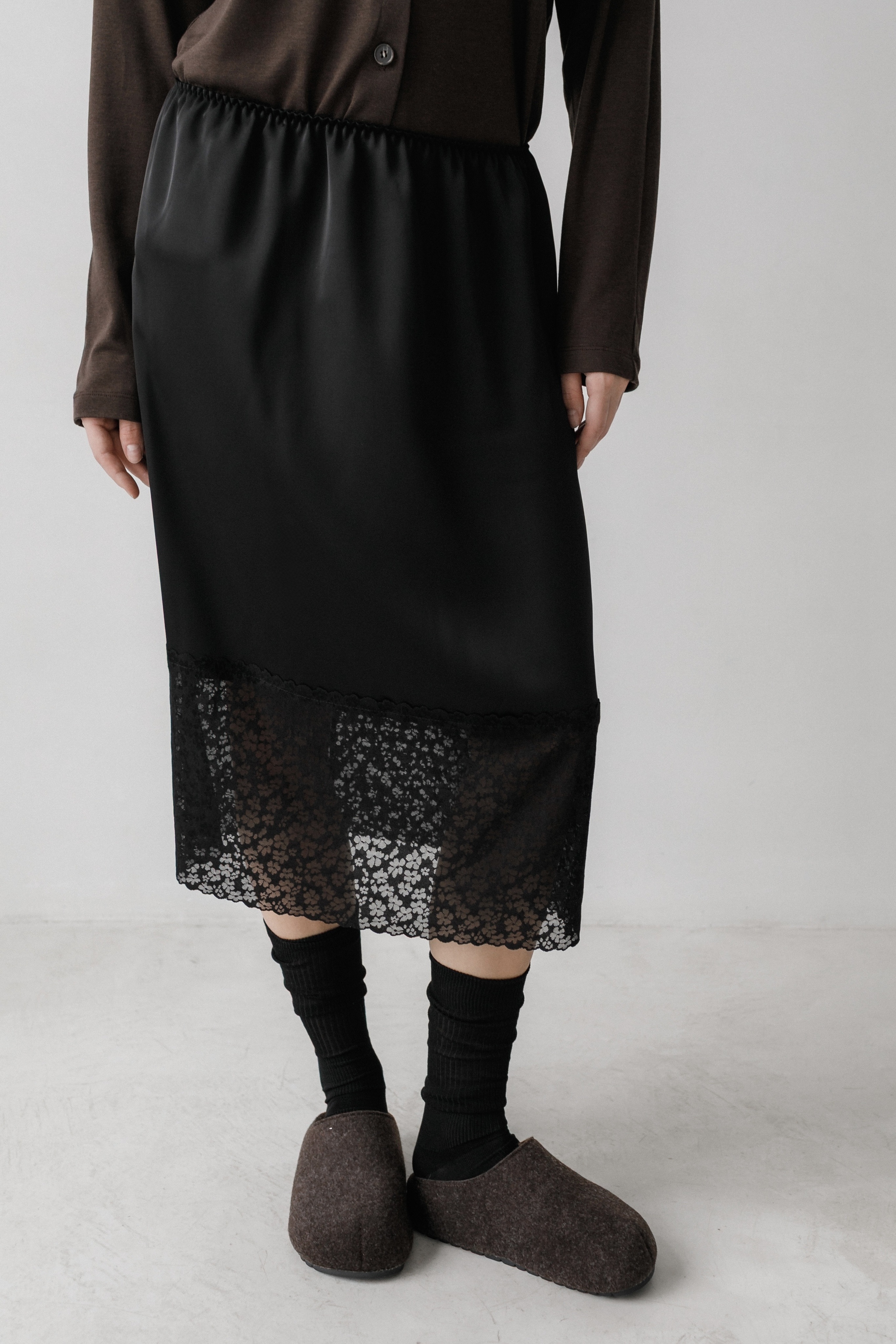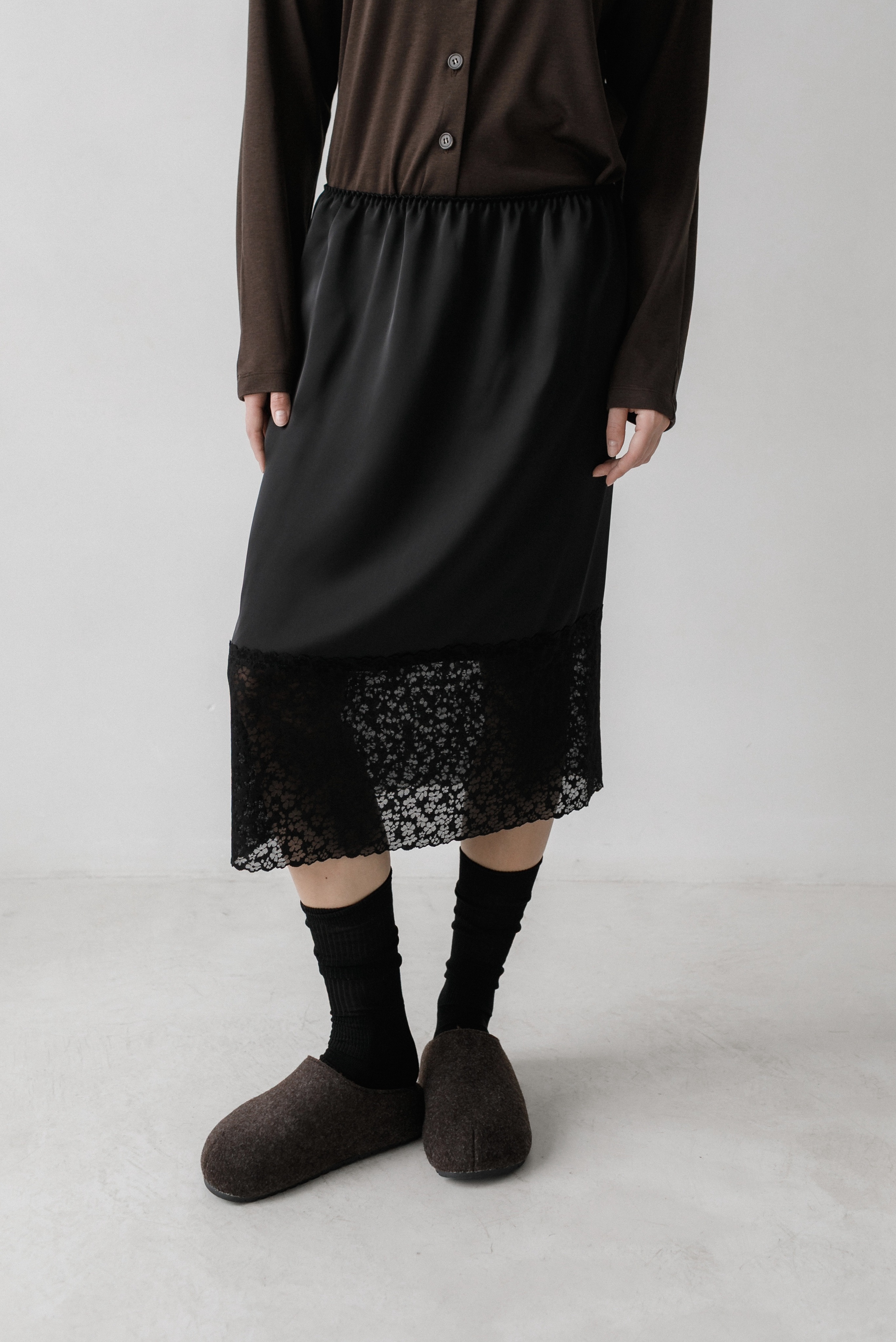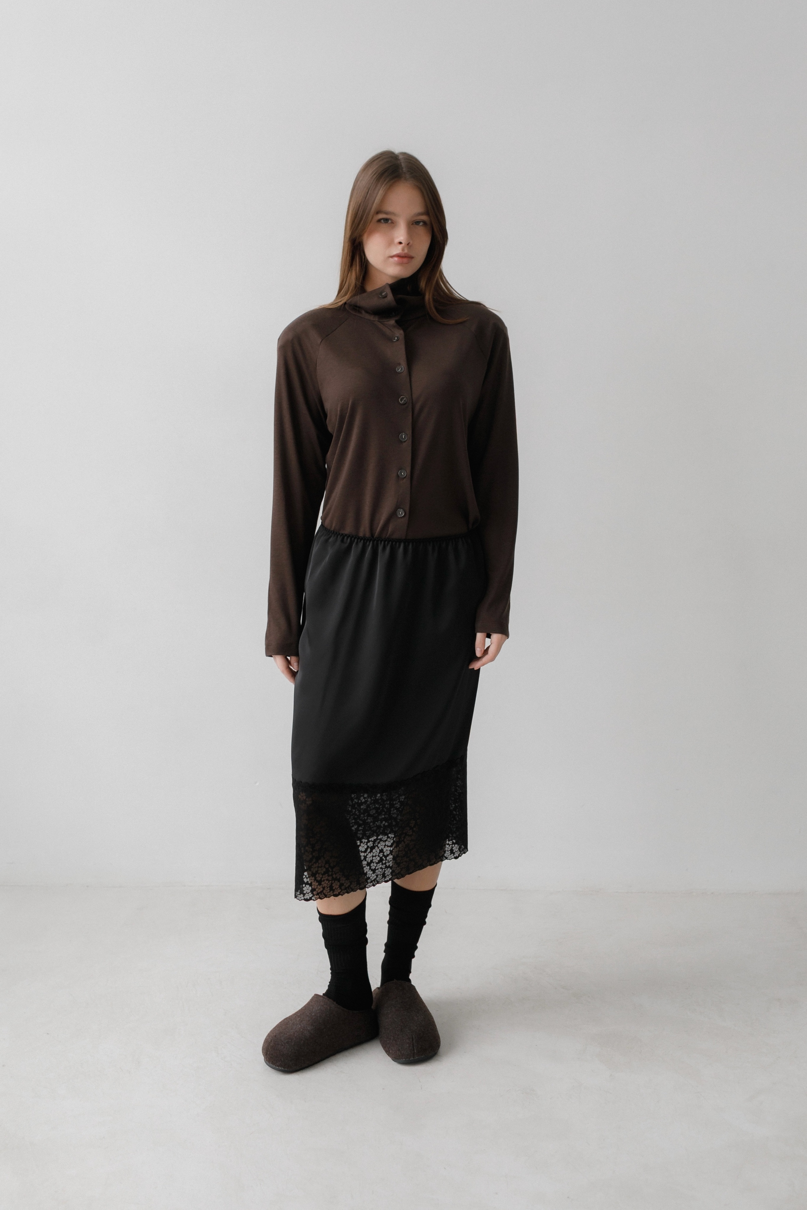 Юбка из японского шелка с кружевом в тон полотна в длине миди, с мягкой резинкой на талии, что даёт универсальность в посадке. Широкое эластичное кружево делает её интересной для создания Ваших дерзких и одновременно романтичных образов.