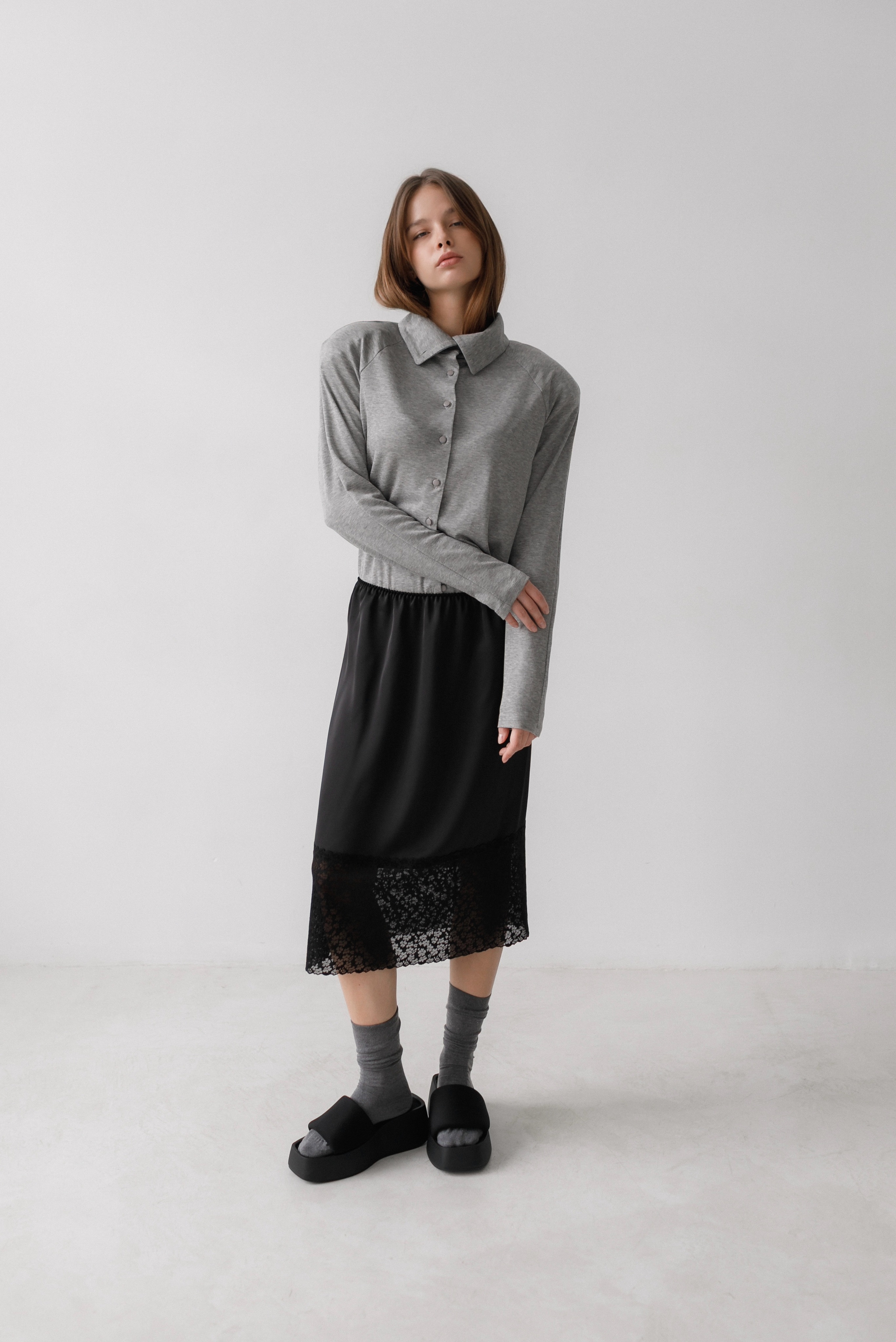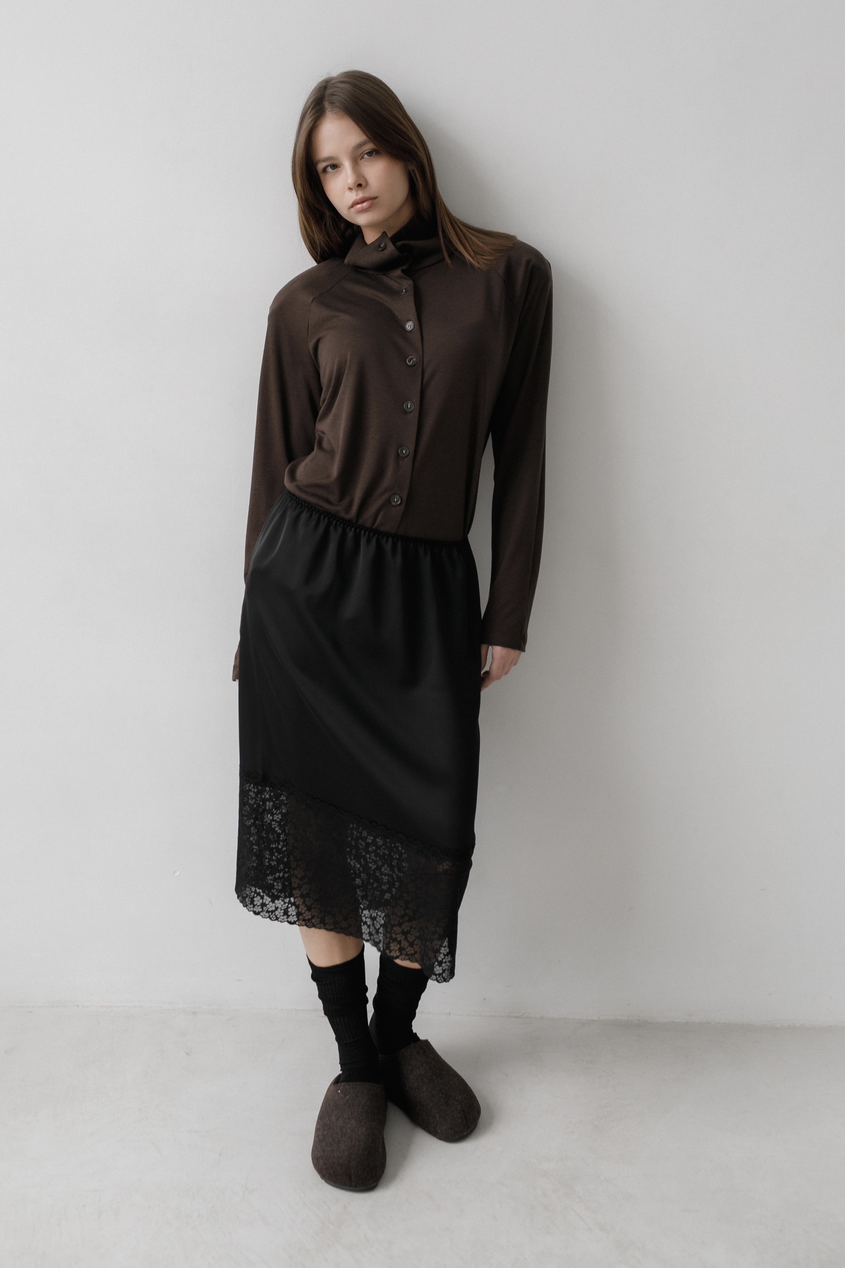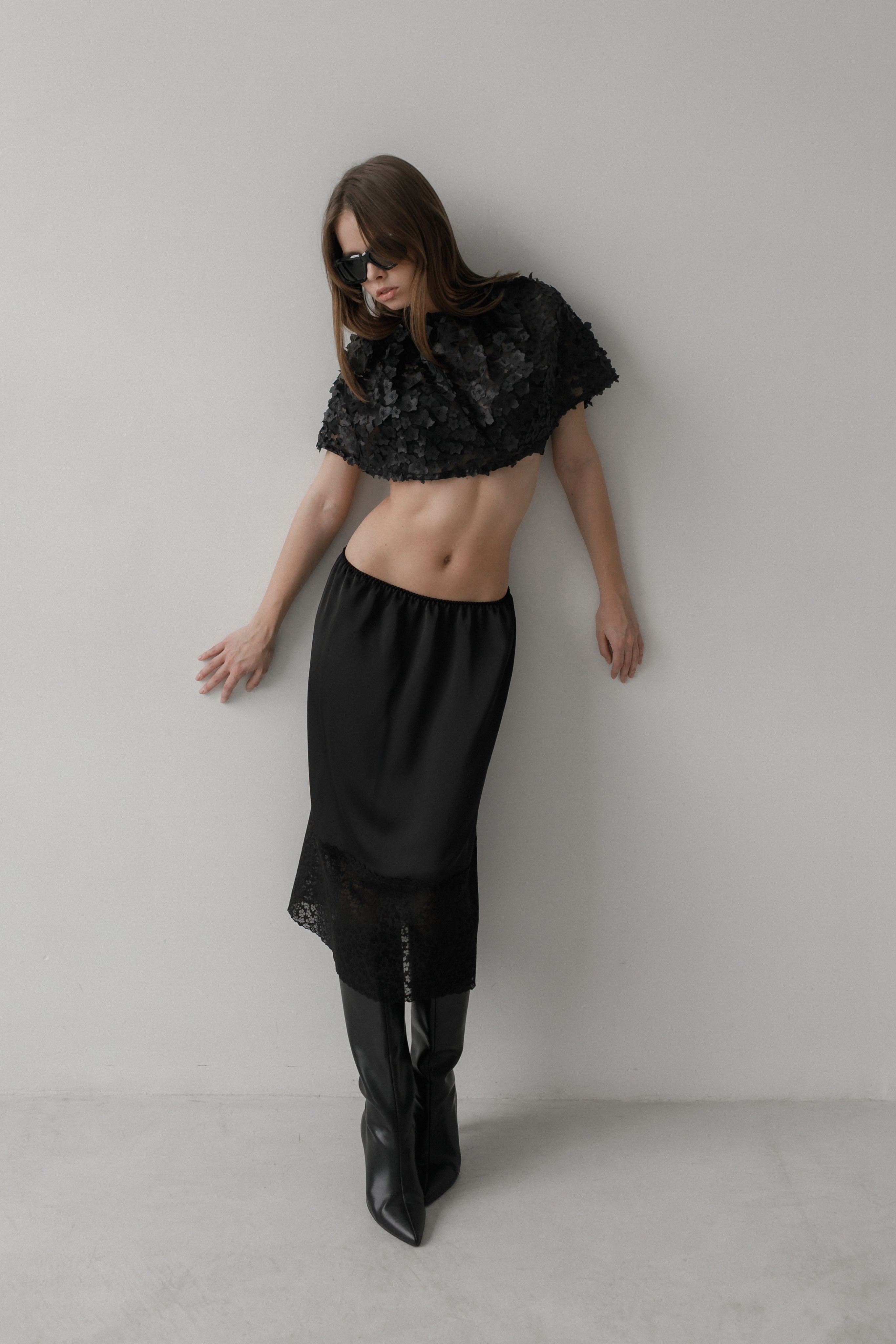 Юбка из японского шелка с кружевом в тон полотна в длине миди, с мягкой резинкой на талии, что даёт универсальность в посадке. Широкое эластичное кружево делает её интересной для создания Ваших дерзких и одновременно романтичных образов.